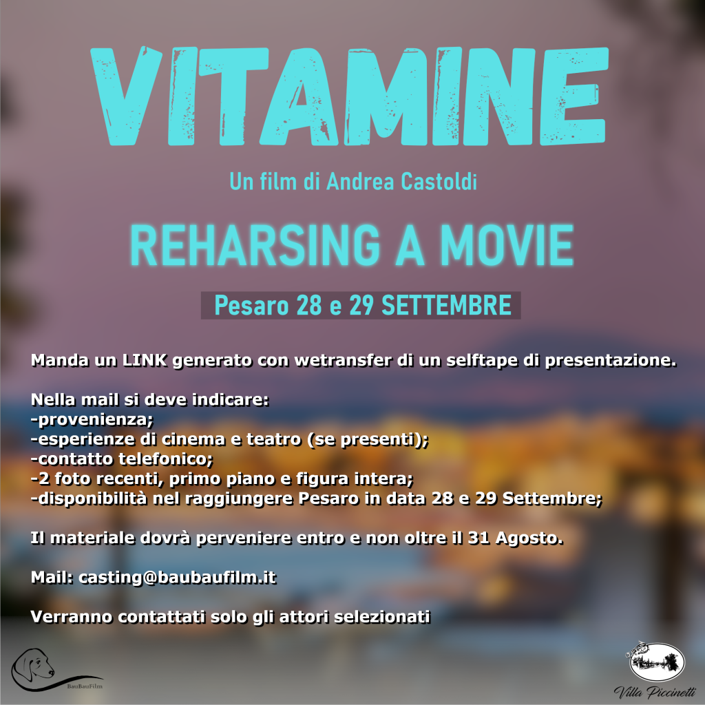 Cerchiamo attori e attrici per le prove di “Vitamine”, film  in preparazione per il 2025.